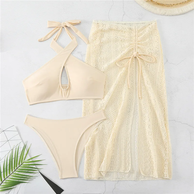 Read to Ship 3 Piece Women's Bikini Swimsuit Halter Top Swimsuits for Woman
